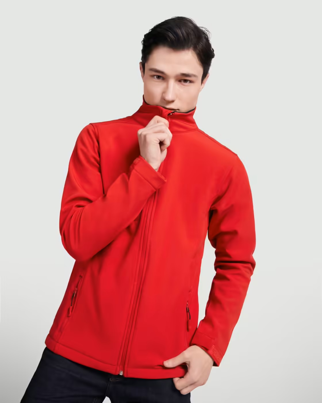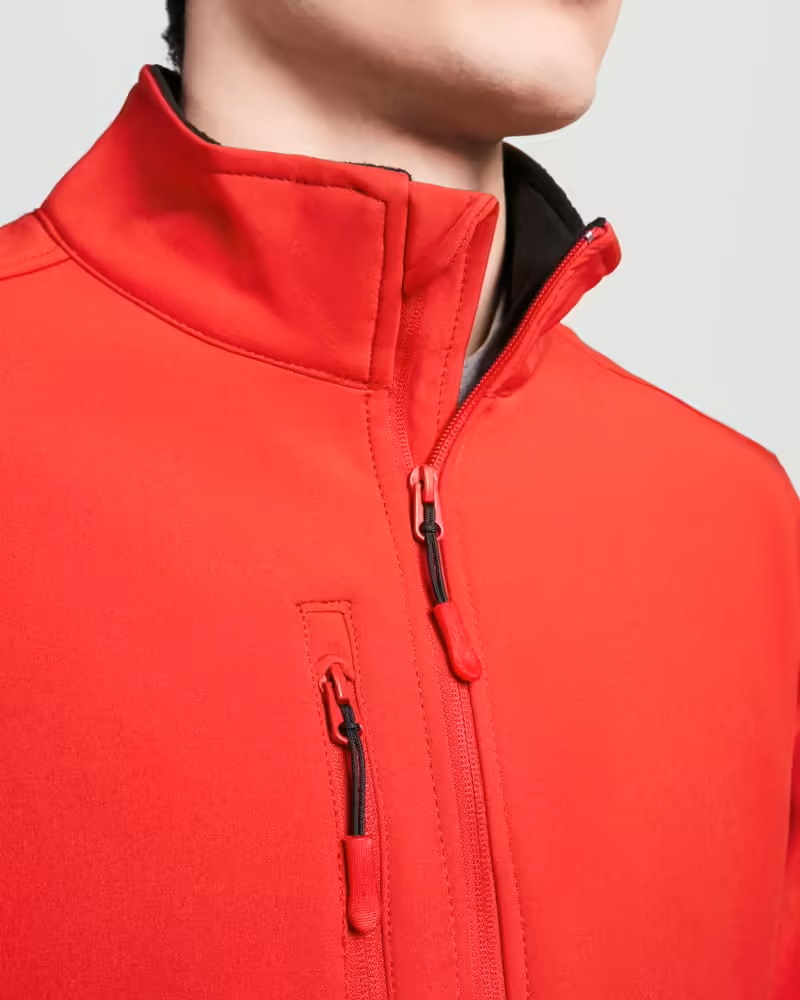 Softshell compuesto de 2 capas con corte entallado. Cremallera invertida a tono, con protector de barbilla y tirador. Forro interior en tejido polar. Cuenta con bolsillo exterior en pecho derecho con cremallera a tono y tirador, y dos bolsillos exteriores con cremallera a tono y tirador. Ajustadores en puño con velcro. Bajo con cordón elástico y topes.