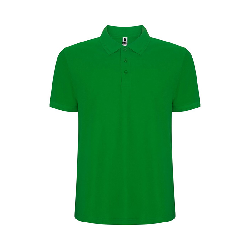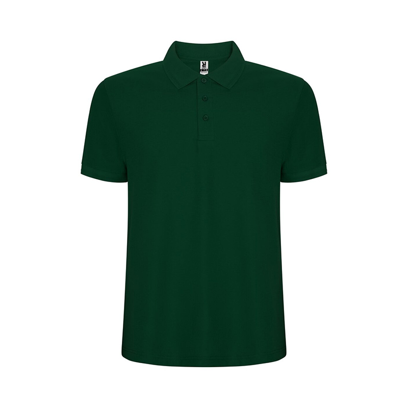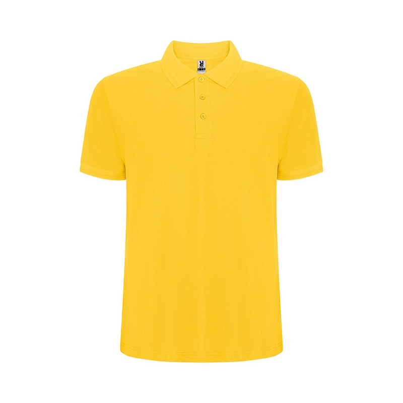 Polo de manga corta. Cuello y ribete de mangas en canalé 1×1 con detalle en relieve. Tapeta con 3 botones. Cubrecosturas reforzado en cuello. Aperturas laterales y bolsillo opcional.