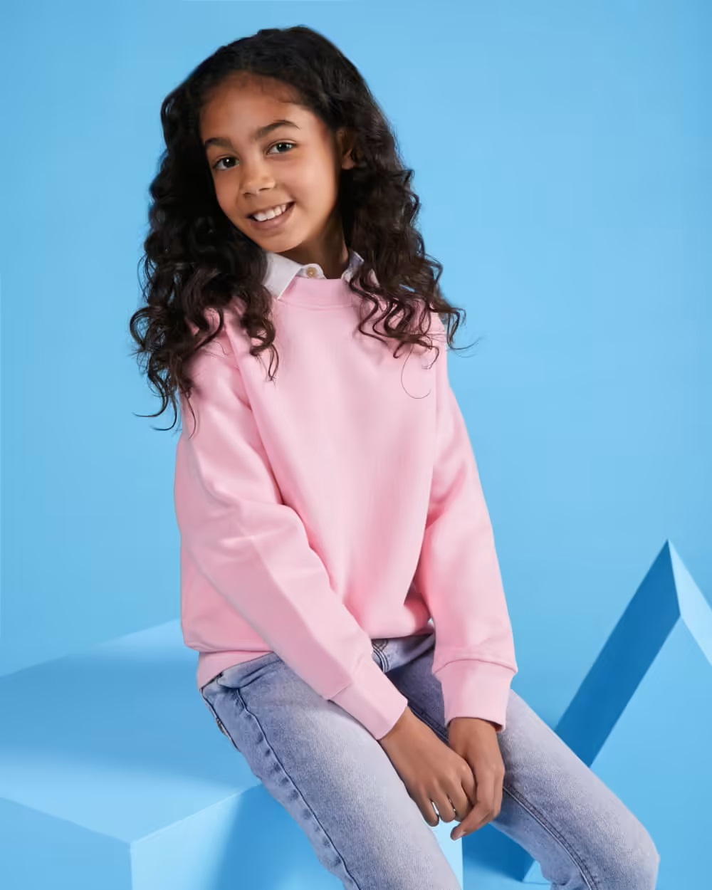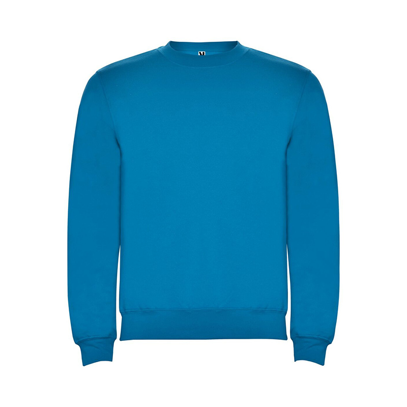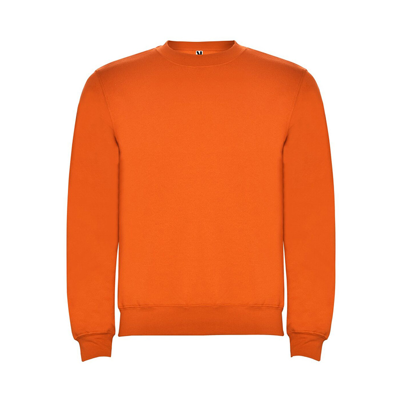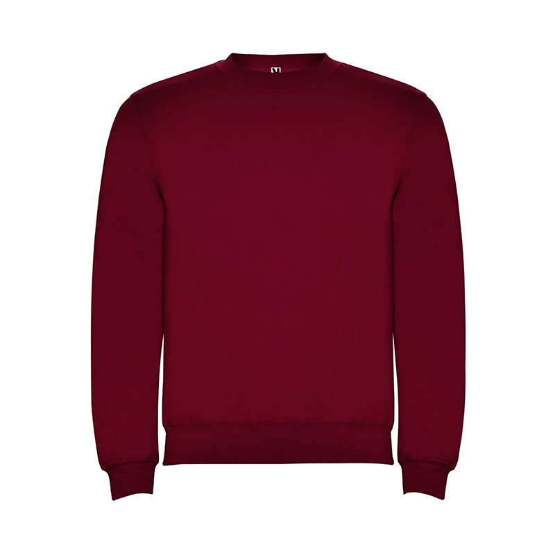 Sudadera en diseño clásico, con cuello, puños y cinturilla de punto canalé 1×1 con elastano. Cubrecosturas reforzado en cuello.